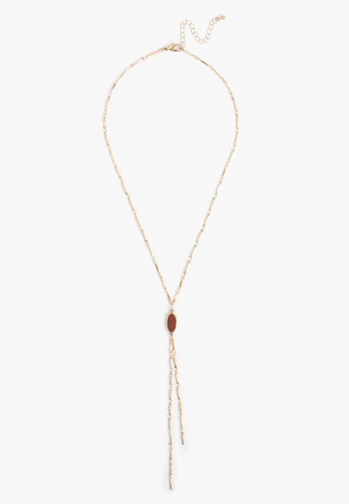 Be the first to review “Faux Rust Oval Stone Pendant Y Necklace”