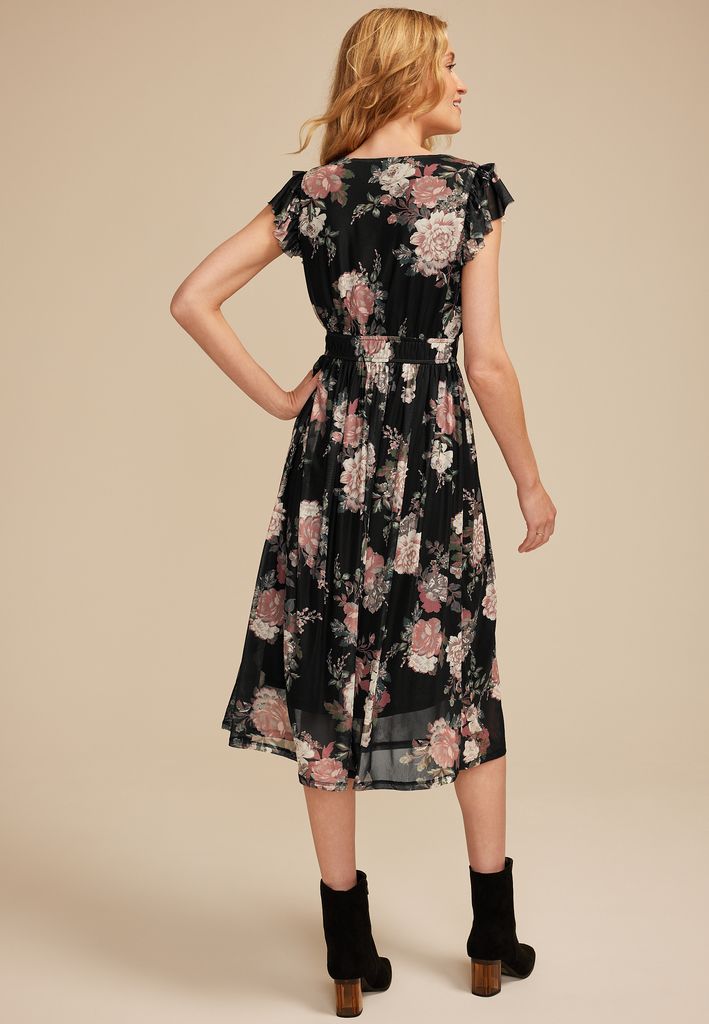 Be the first to review “Floral Mesh Flutter Sleeve Midi Dress”