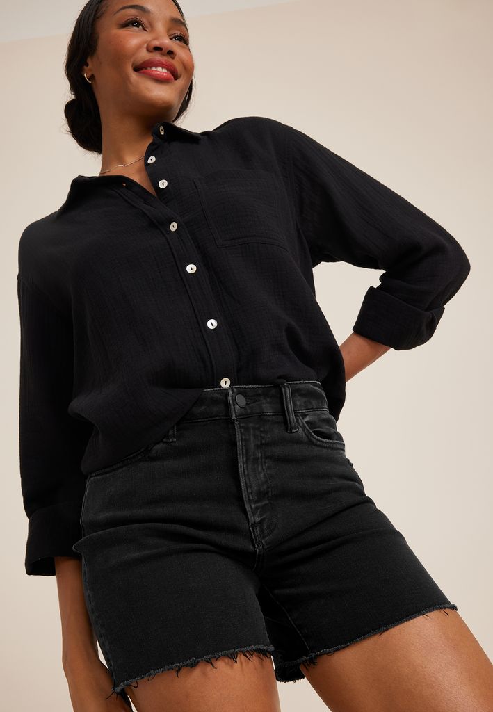 Flying Monkey™ Black High Rise Frayed Hem 4.5in Short