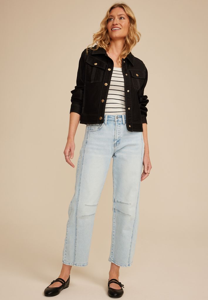 - Barrel leg: Fitted at the waist relaxed through the hip and thigh and tapered at the ankle.