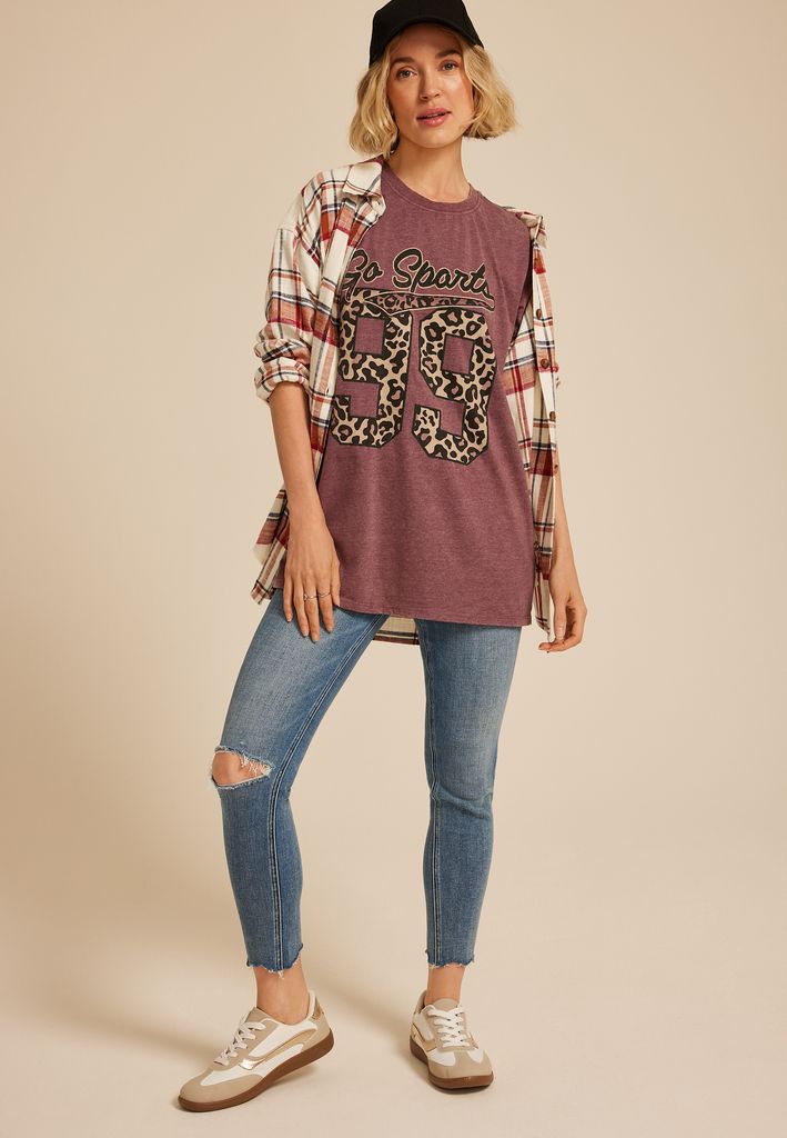 Go Sports Leopard Print Oversized Fit Graphic Tee