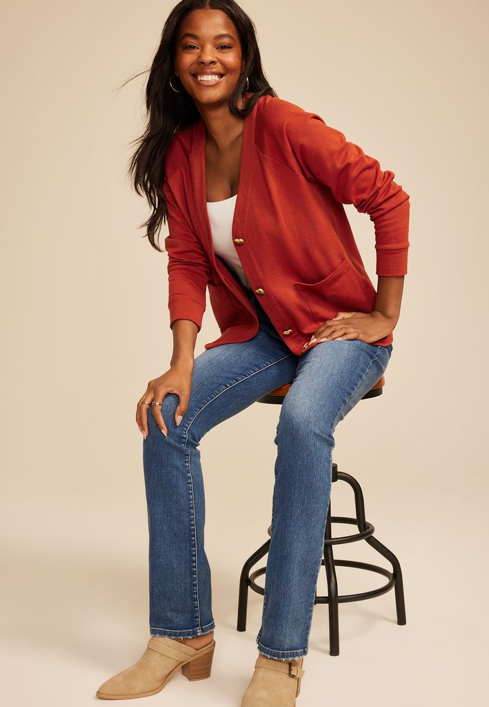 Fall in love with the little details. This Heart Button Front Cardigan brings effortless charm to your everyday look with its gleaming gold heart-shaped buttons and soft, structured knit. Designed with a relaxed silhouette and practical patch pockets, it’s the perfect blend of cozy and comfort. Whether layered over a crisp tee or paired with your favorite denim, this piece adds a touch of warmth to every outfit.