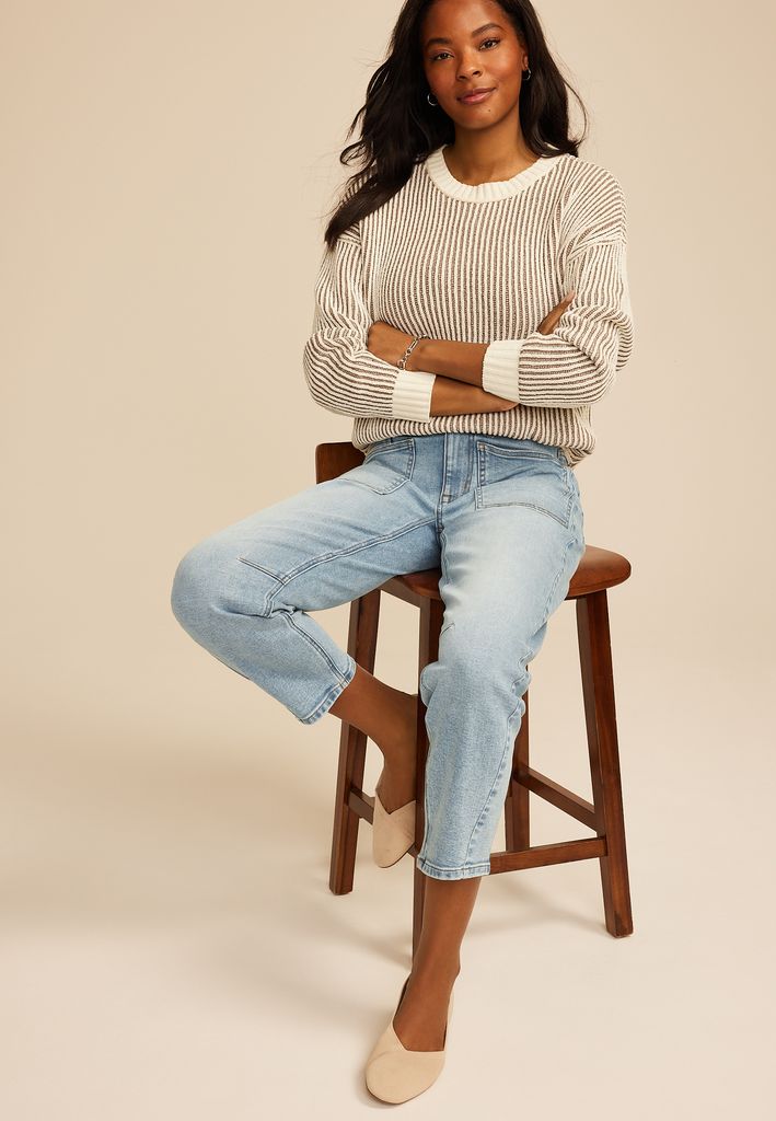 • Barrel leg: Fitted at the waist relaxed through the hip and thigh and tapered at the ankle.