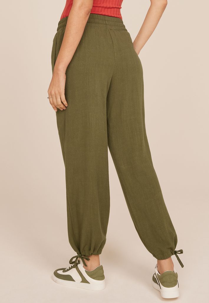 Linen Blend Convertible Mid Rise Wide Leg Pant