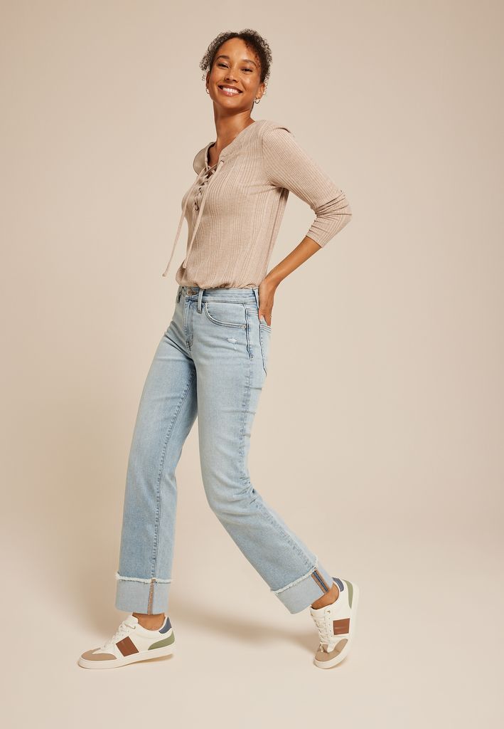 Be the first to review “m jeans by maurices™ High Rise Relaxed Straight Frayed Hem Ankle Jean”