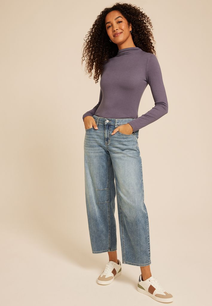 Be the first to review “Mid Rise Elastic Waist Barrel Jean”