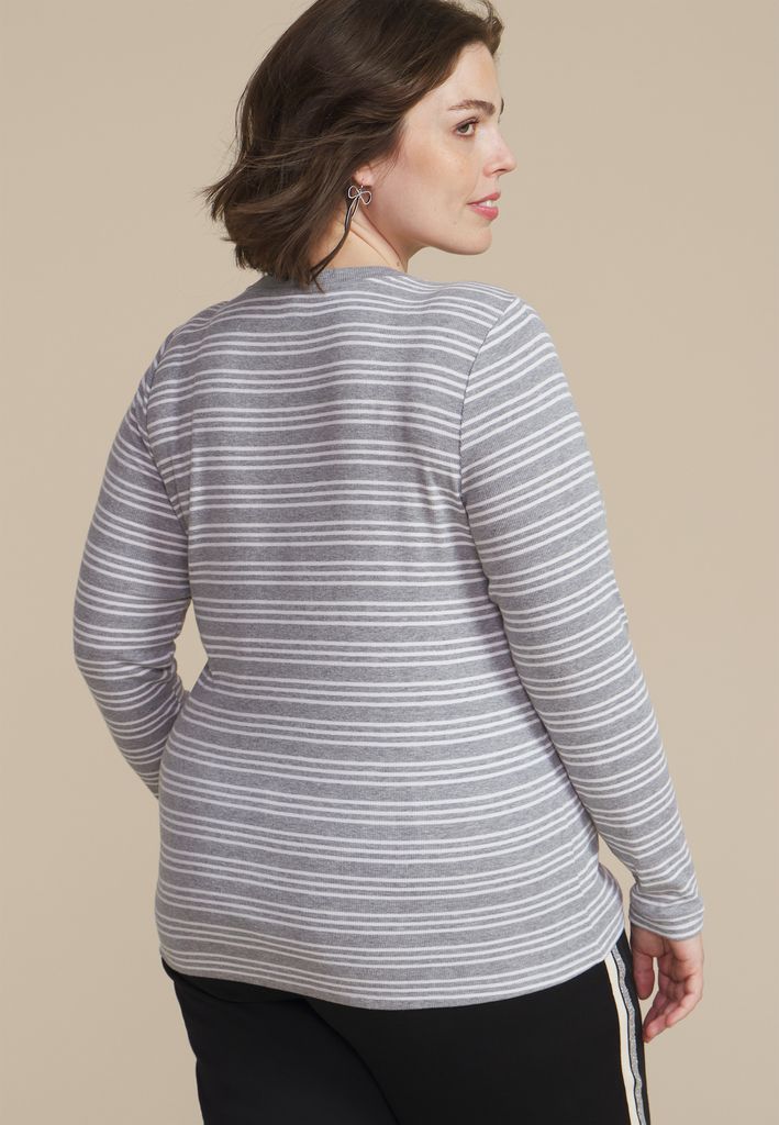 Plus Size 24/7 Striped Ada Ribbed Long Sleeve Tee