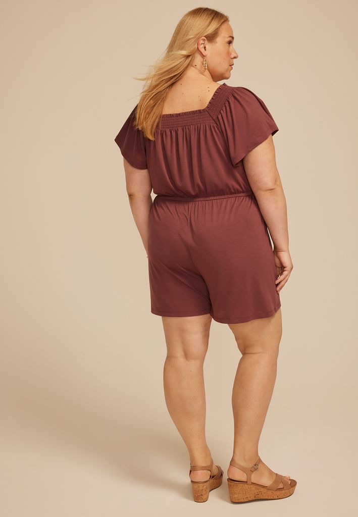 Plus Size Bare Smocked Square Neck Romper