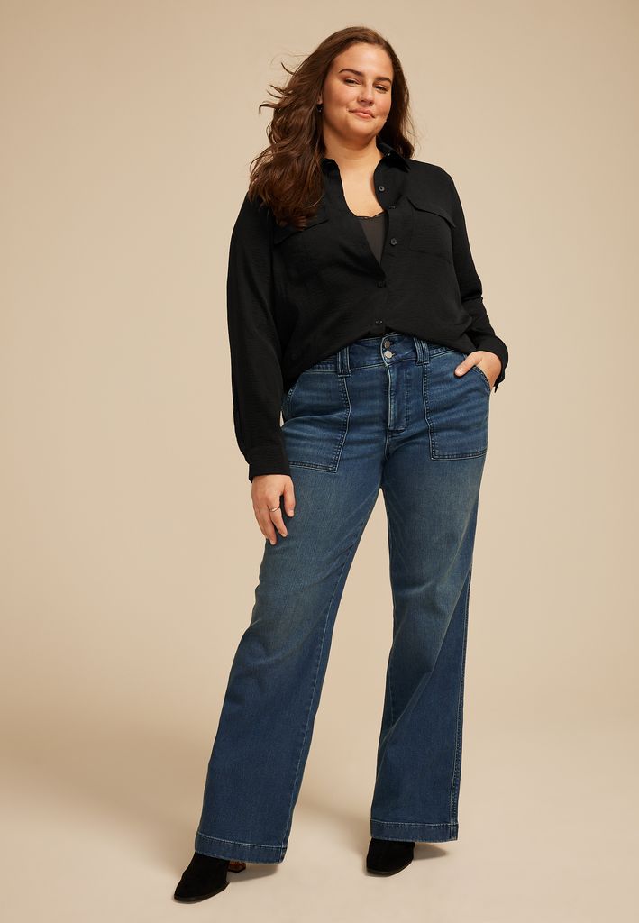 Be the first to review “Plus Size Black Utility Button Down Shirt”