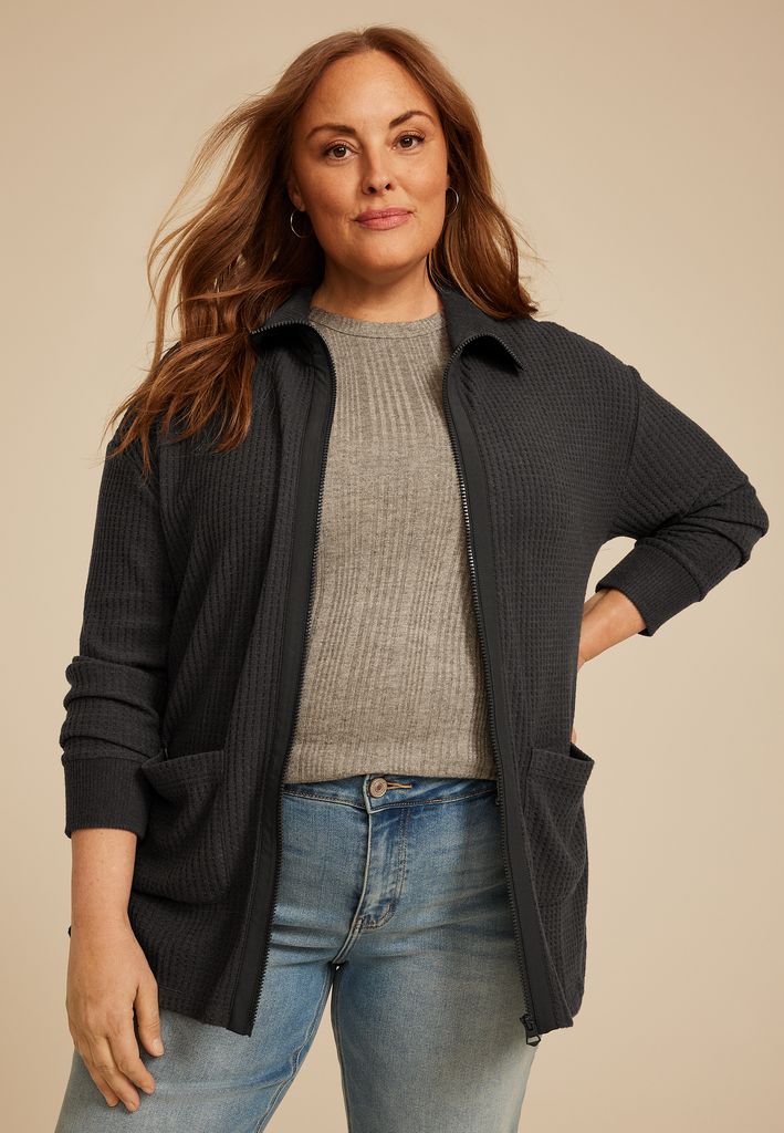 Be the first to review “Plus Size Cozy Waffle Zip Jacket”
