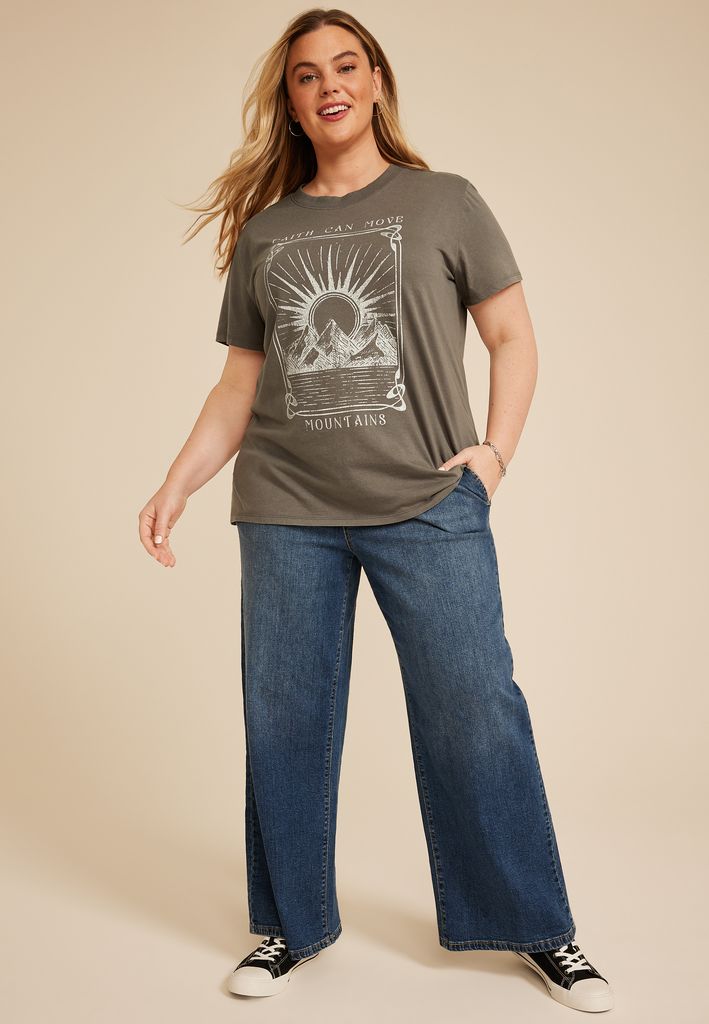 - “Faith Can Move Mountains” mountain and sun design with a decorative border graphic