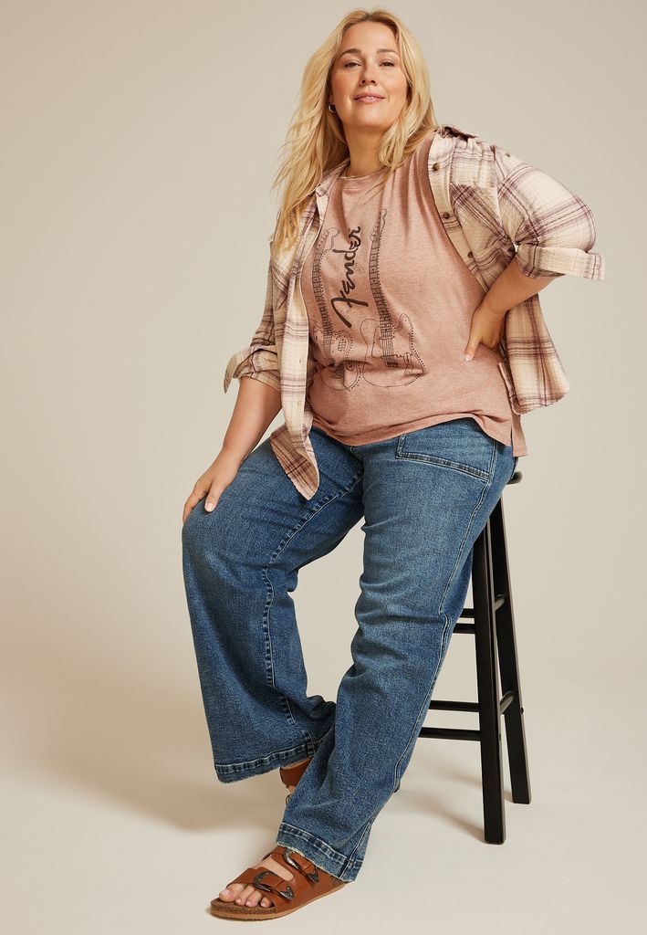 - licensed “Fender” studded guitar graphic