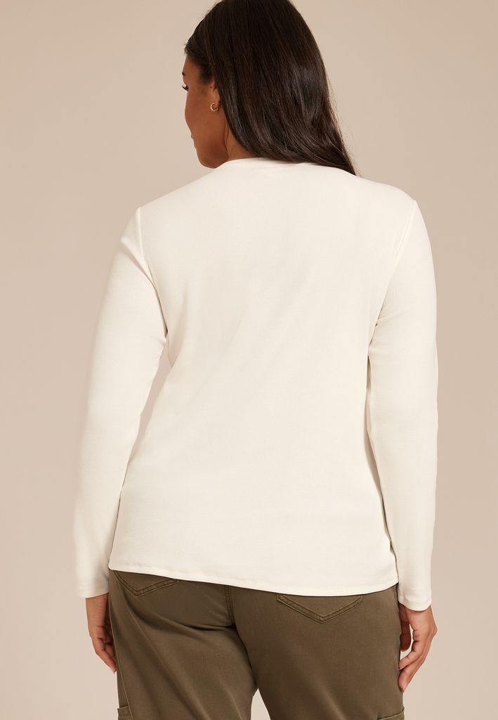 A soft ribbed Henley with delicate floral embroidery brings a touch of charm to your everyday style. Finished with a classic button-front placket, this piece offers a flattering, closer fit that feels effortlessly feminine.