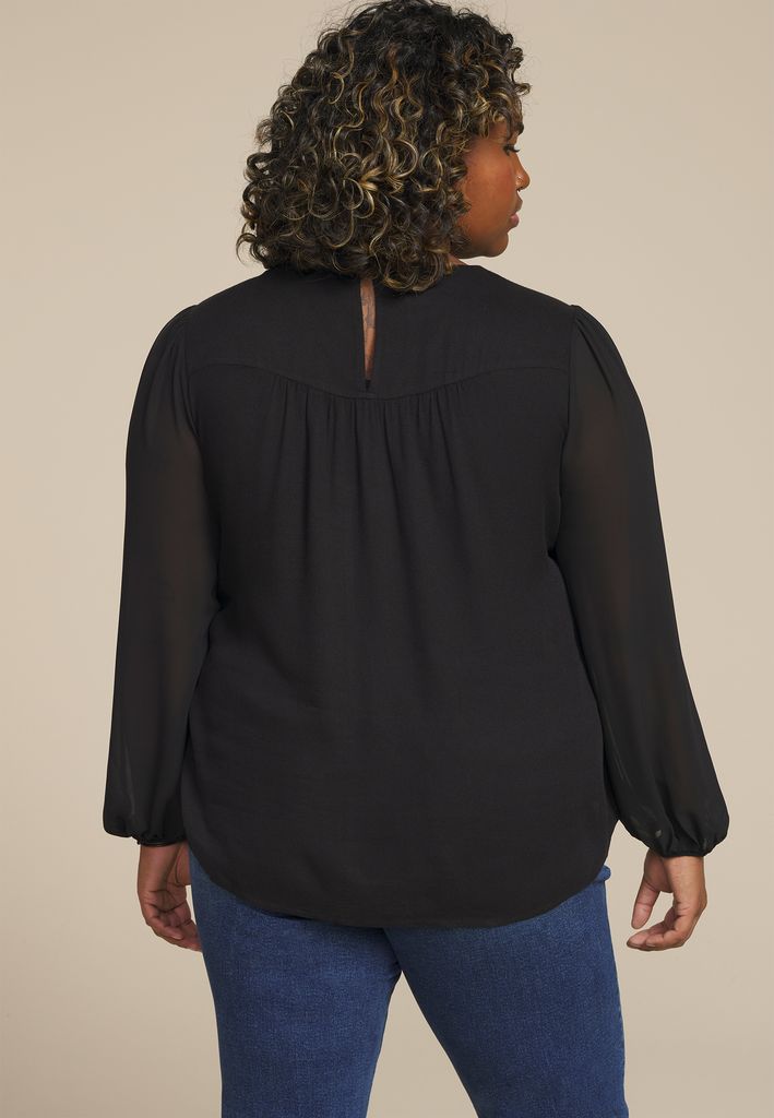 • high neckline with sheer panel insert detail