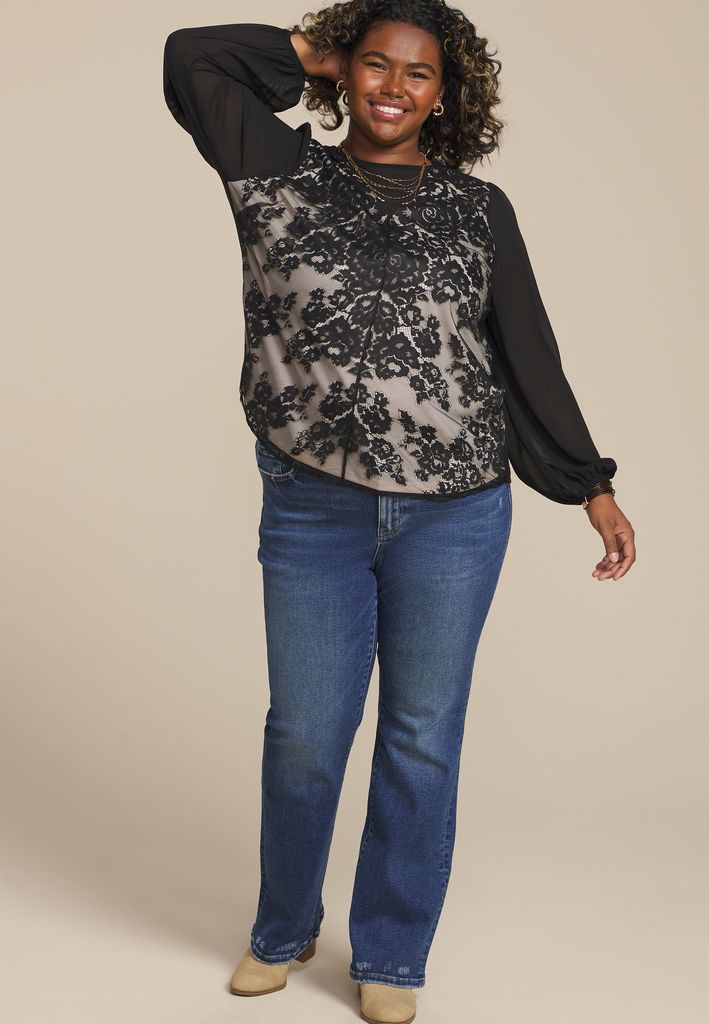 Plus Size Floral Lace Long Sleeve Blouse