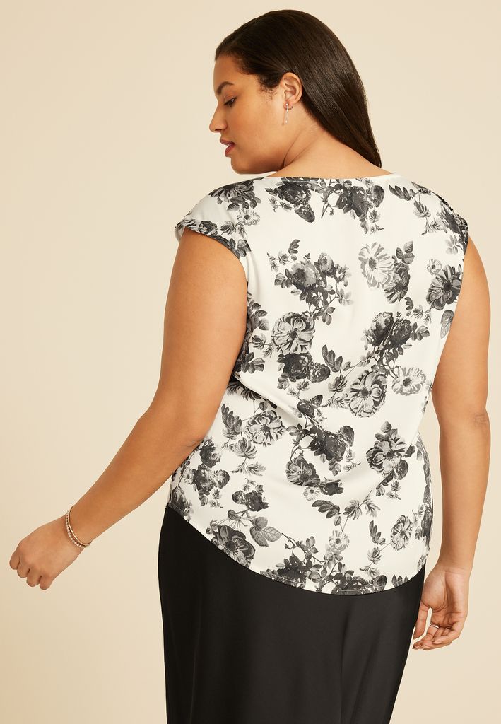 Be the first to review “Plus Size Floral Satin Cowl Neck Blouse”