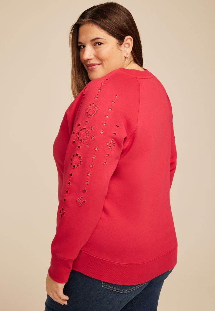 - long sleeves with heart shaped eyelet cutouts along the sleeves