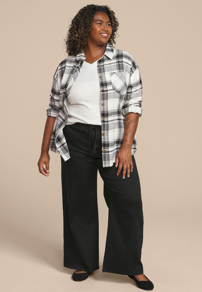 - wide leg: fitted at the hips with a relaxed fit from thigh to hem