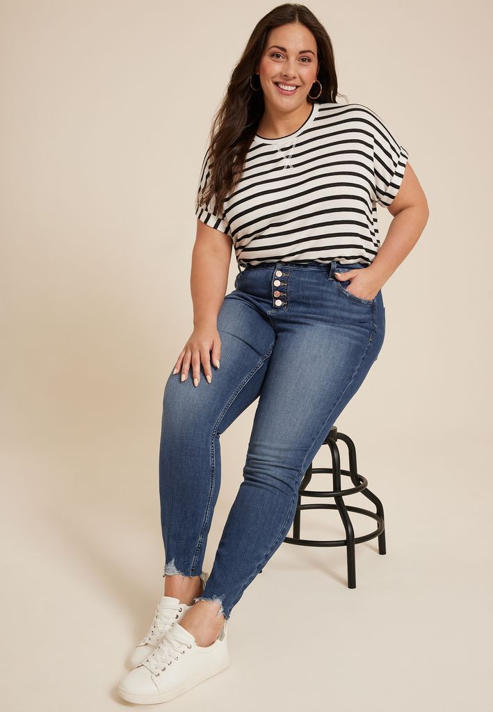 Plus Size m jeans by maurices™ High Rise Button Fly Super Skinny Ankle Jean