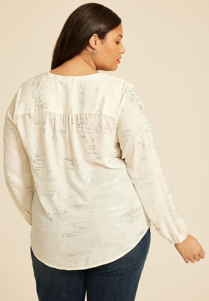 Be the first to review “Plus Size Metallic Abstract V Neck Blouse”
