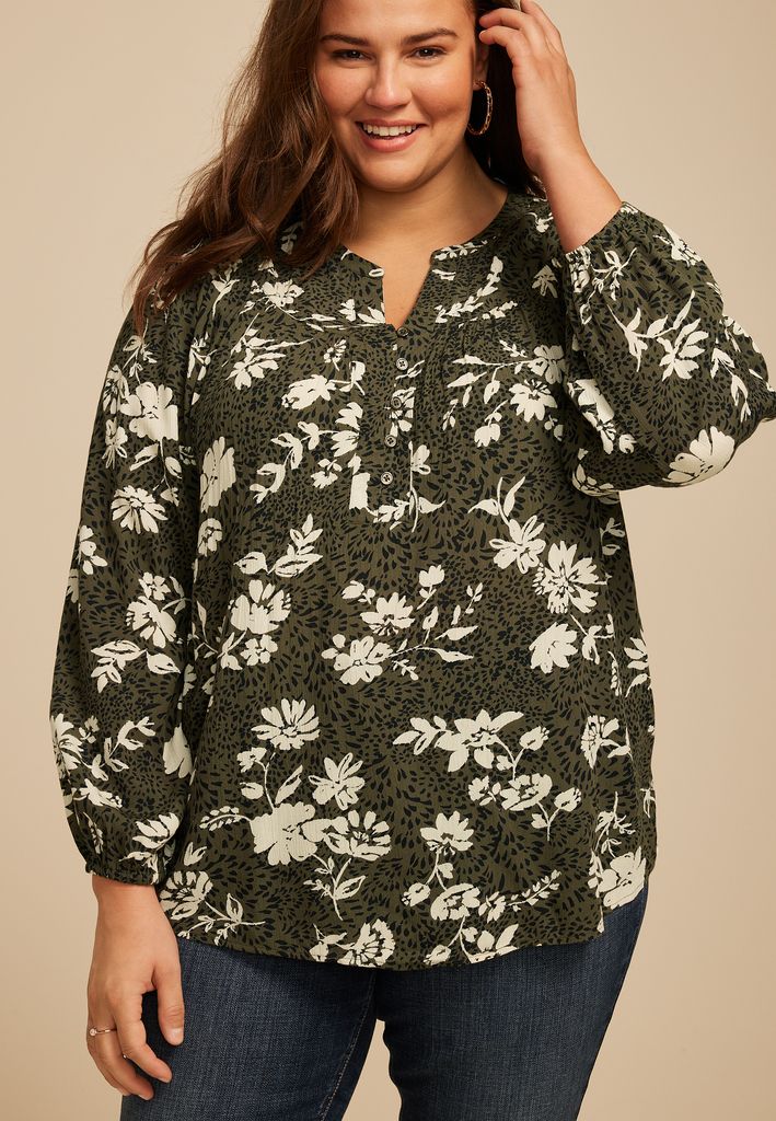 Be the first to review “Plus Size Olive Floral Peasant Blouse”