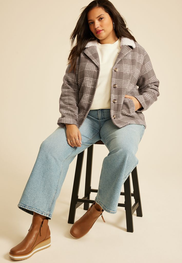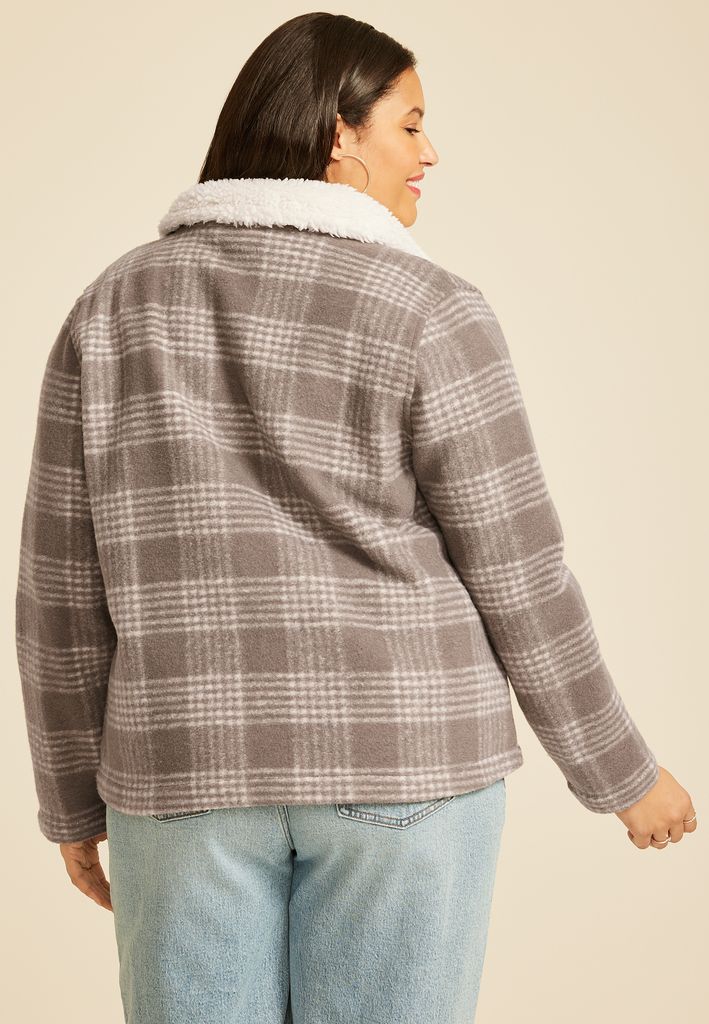 Be the first to review “Plus Size Plaid Sherpa Collar Jacket”