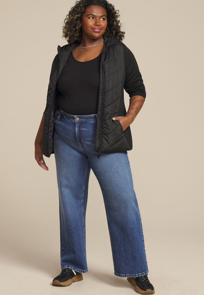 Plus Size Quilted Knit Hooded Jacket
