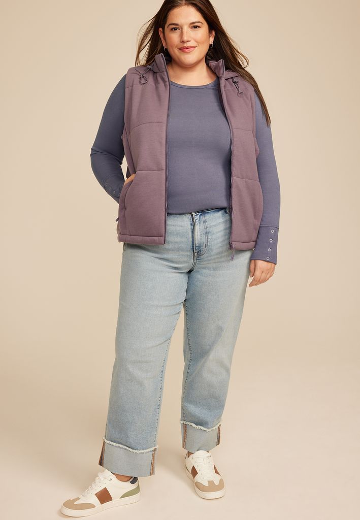 Plus Size Soft Essential Crew Neck Snap Cuff Top