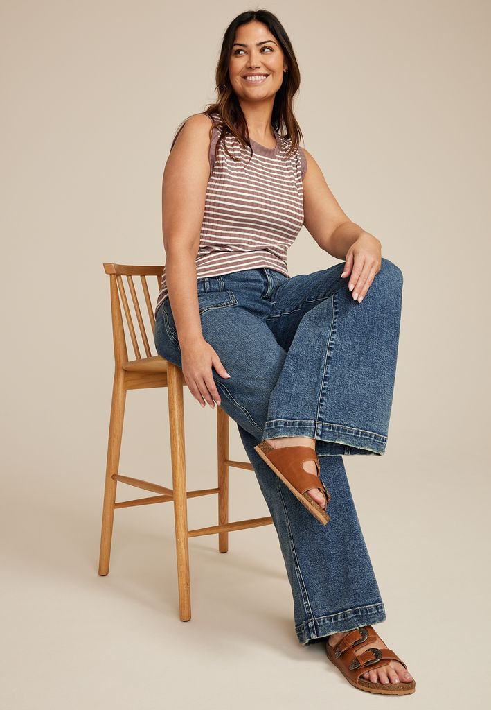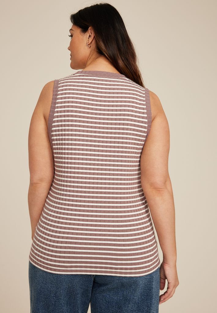 Plus Size Striped Ribbed Side Gusset Tank Top