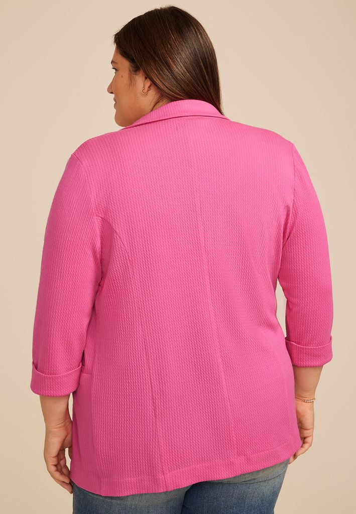 Plus Size Textured Versa 3/4 Sleeve Blazer
