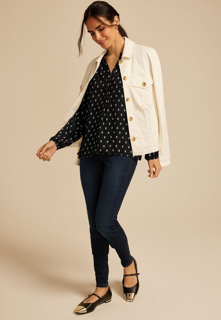 - pleated detailing at shoulders and back for added texture