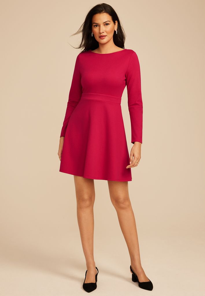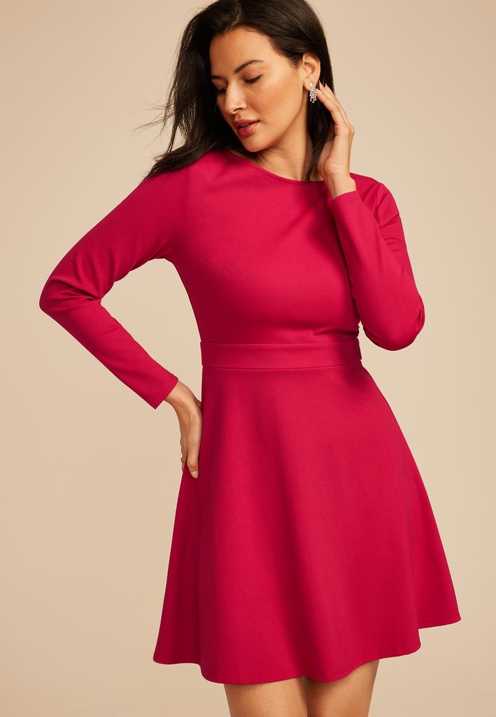 Red Ponte Long Sleeve Mini Dress