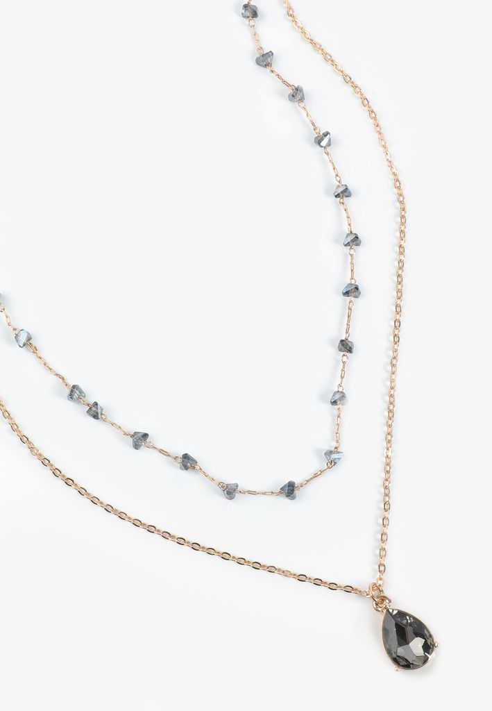 Be the first to review “Smokey Blue Teardrop Pendant Layered Necklace”