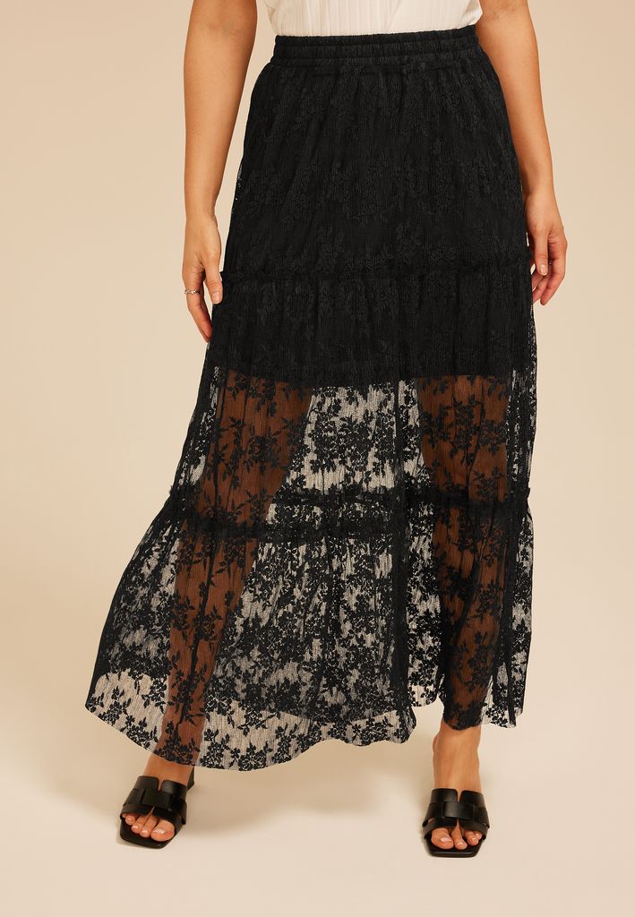 - two tier construction lined with a solid upper layer of fabric and a sheer lace overlay