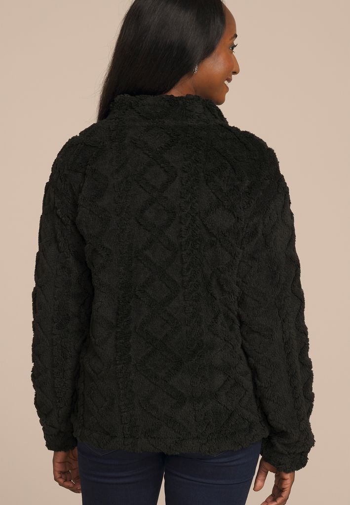 - embossed geometric design with diamond and linear shapes, giving a cabled effect