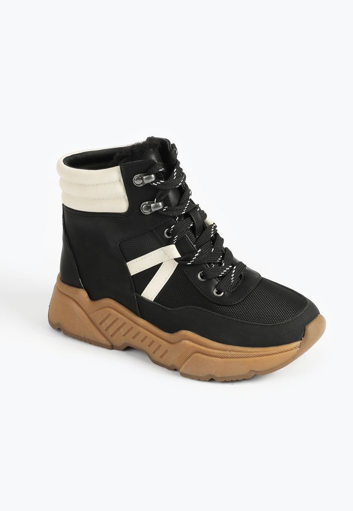 • functional laces with black and white patterned laces and metal eyelets/hooks